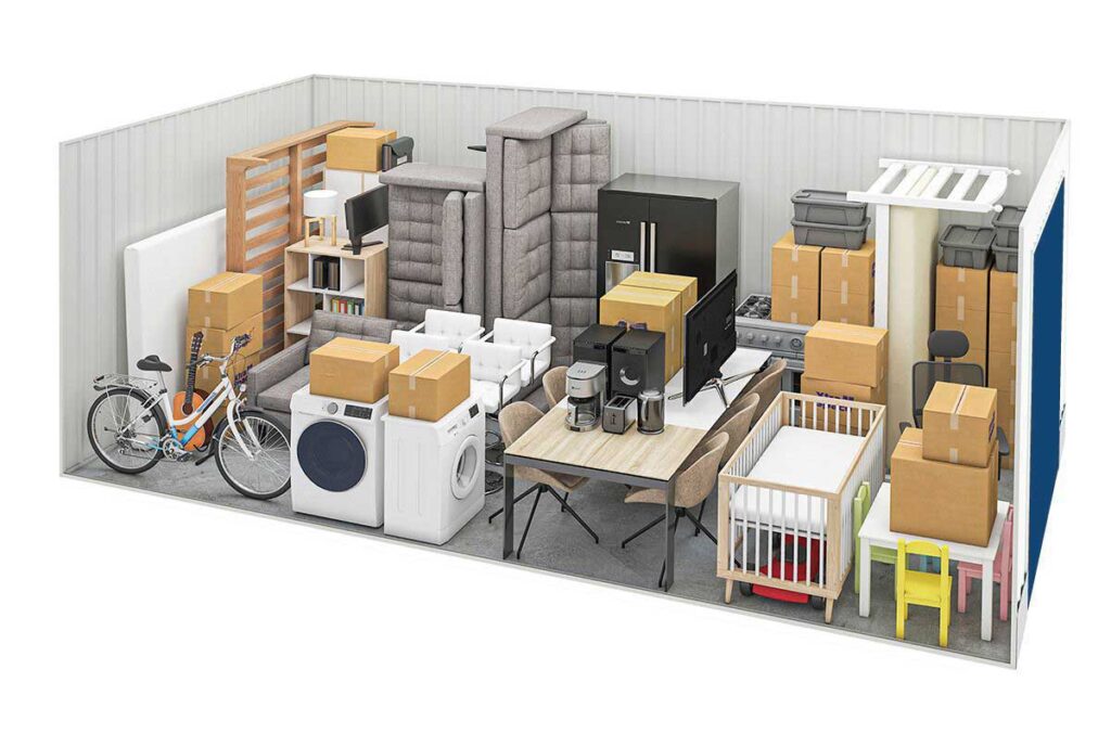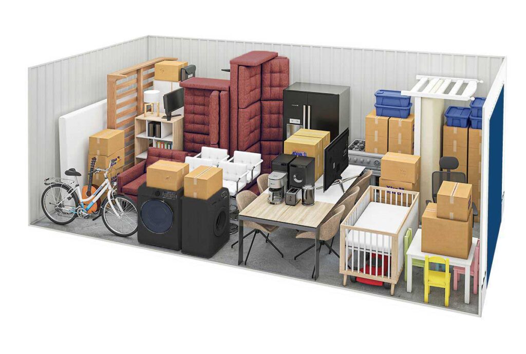 - Contents of a two-bedroom apartment or a small garage.
